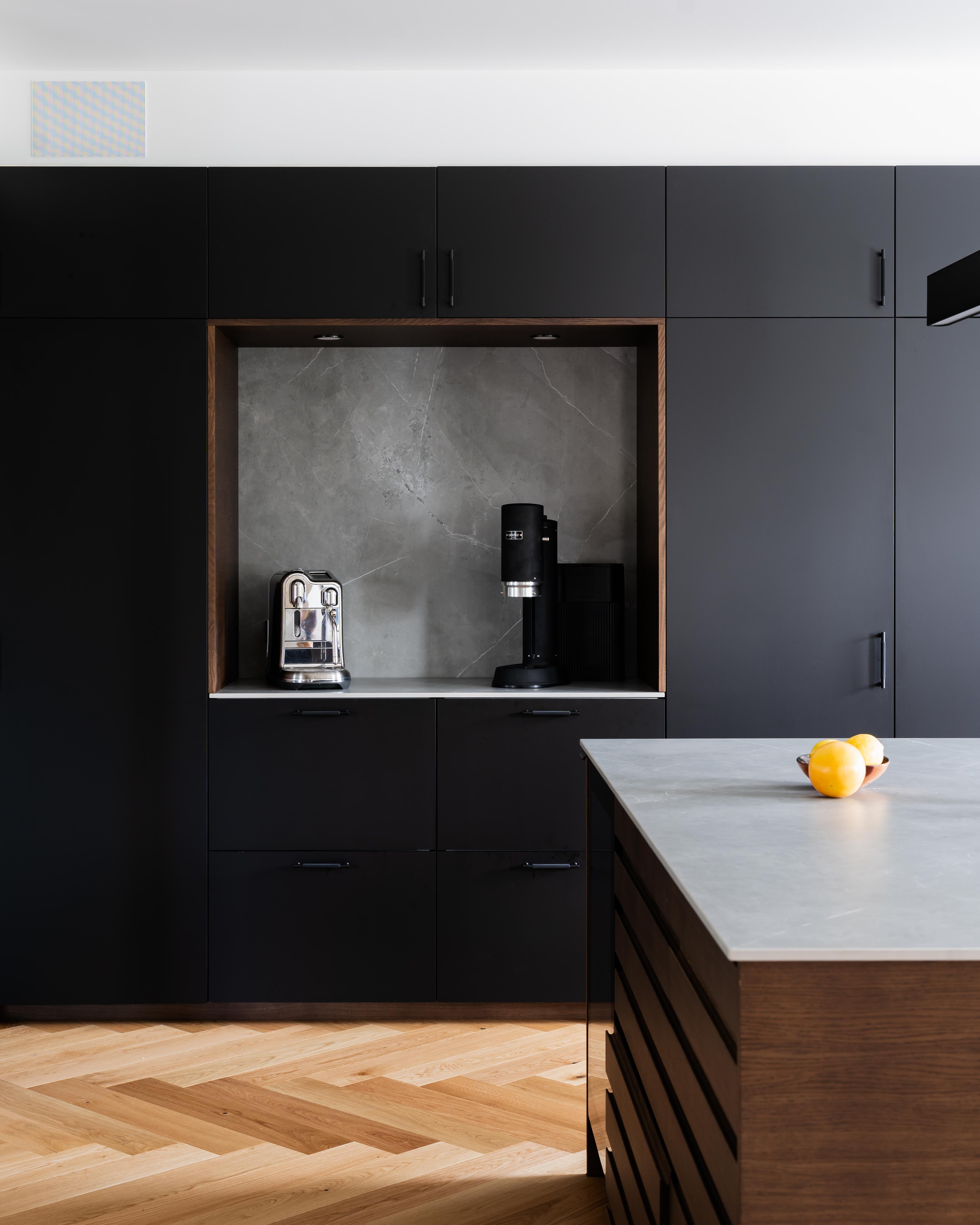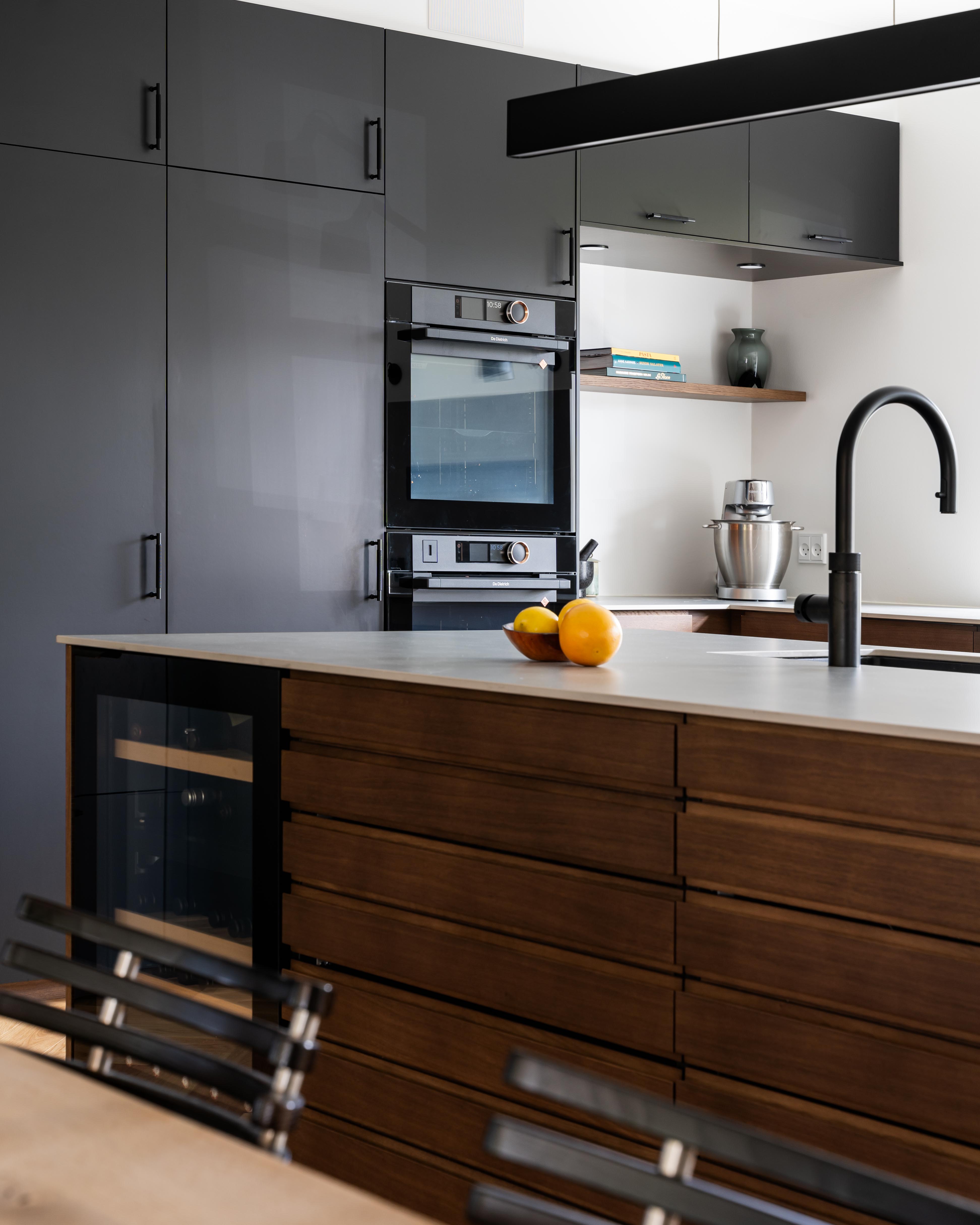 Jesper og hans familie har valgt at mixe sorte IKEA-fronter med Form Plus fronter i røgbejdset eg. Det er en genial måde at opgradere sit IKEA-køkken ved at tilføje lækre snedkerfronter fra os.