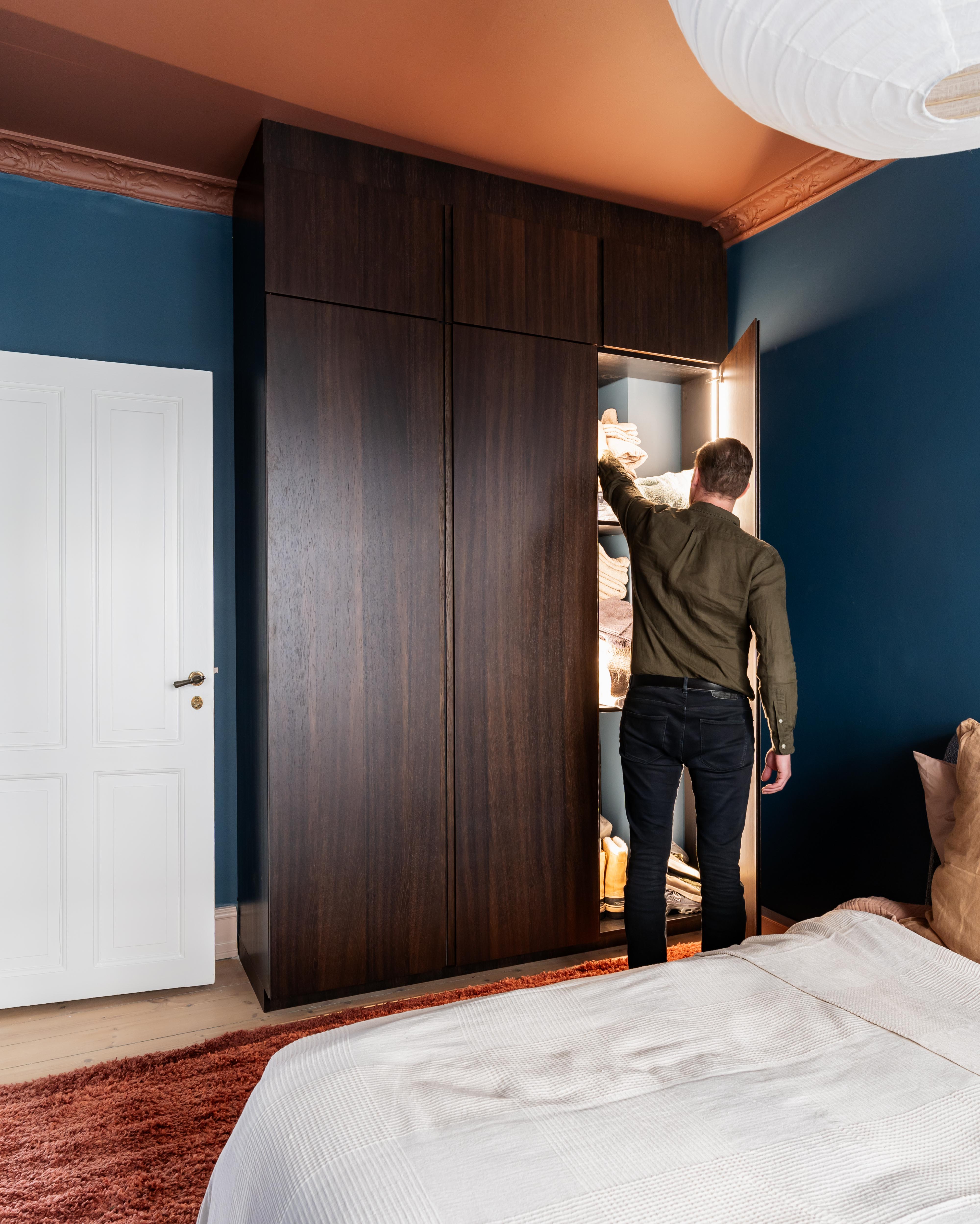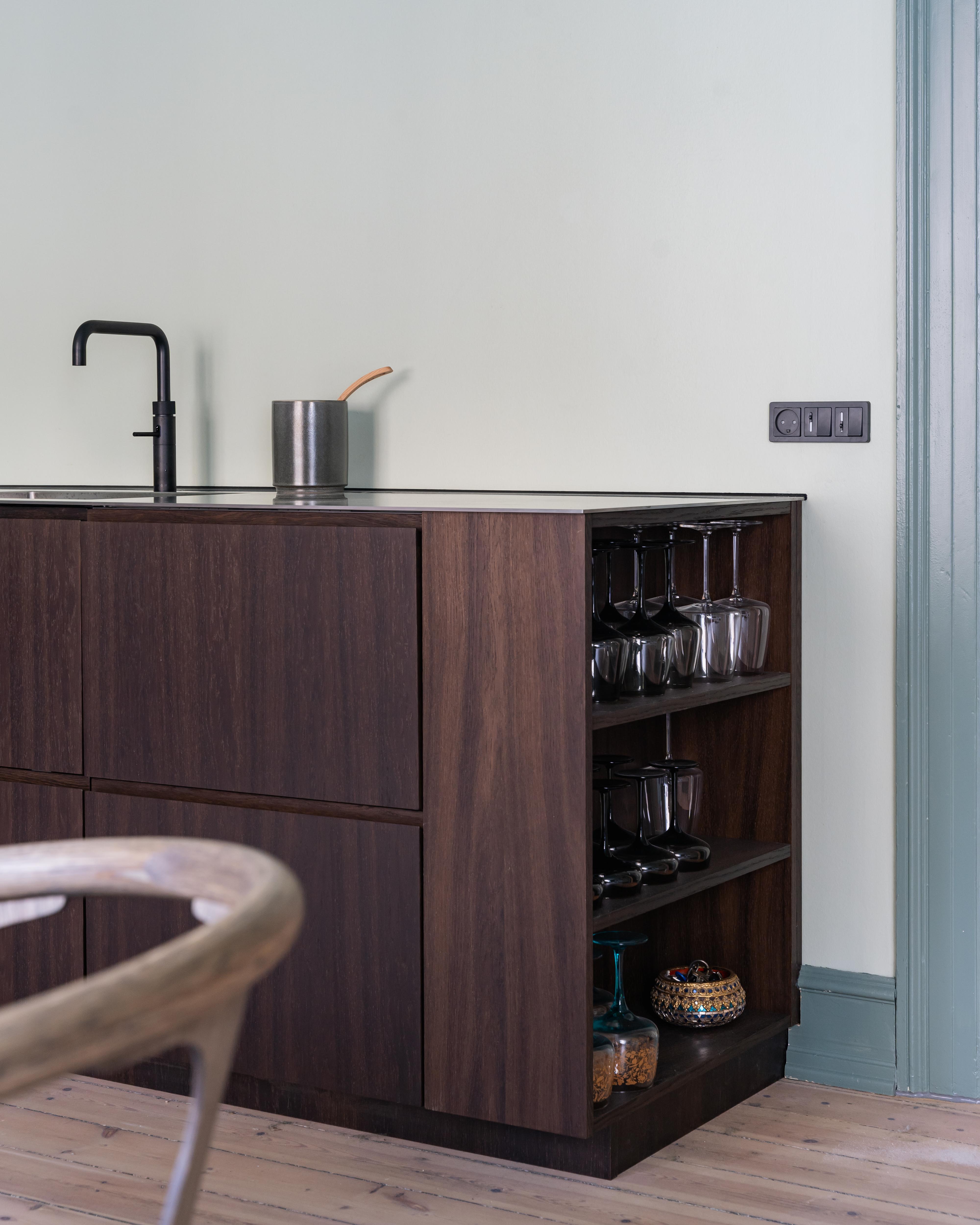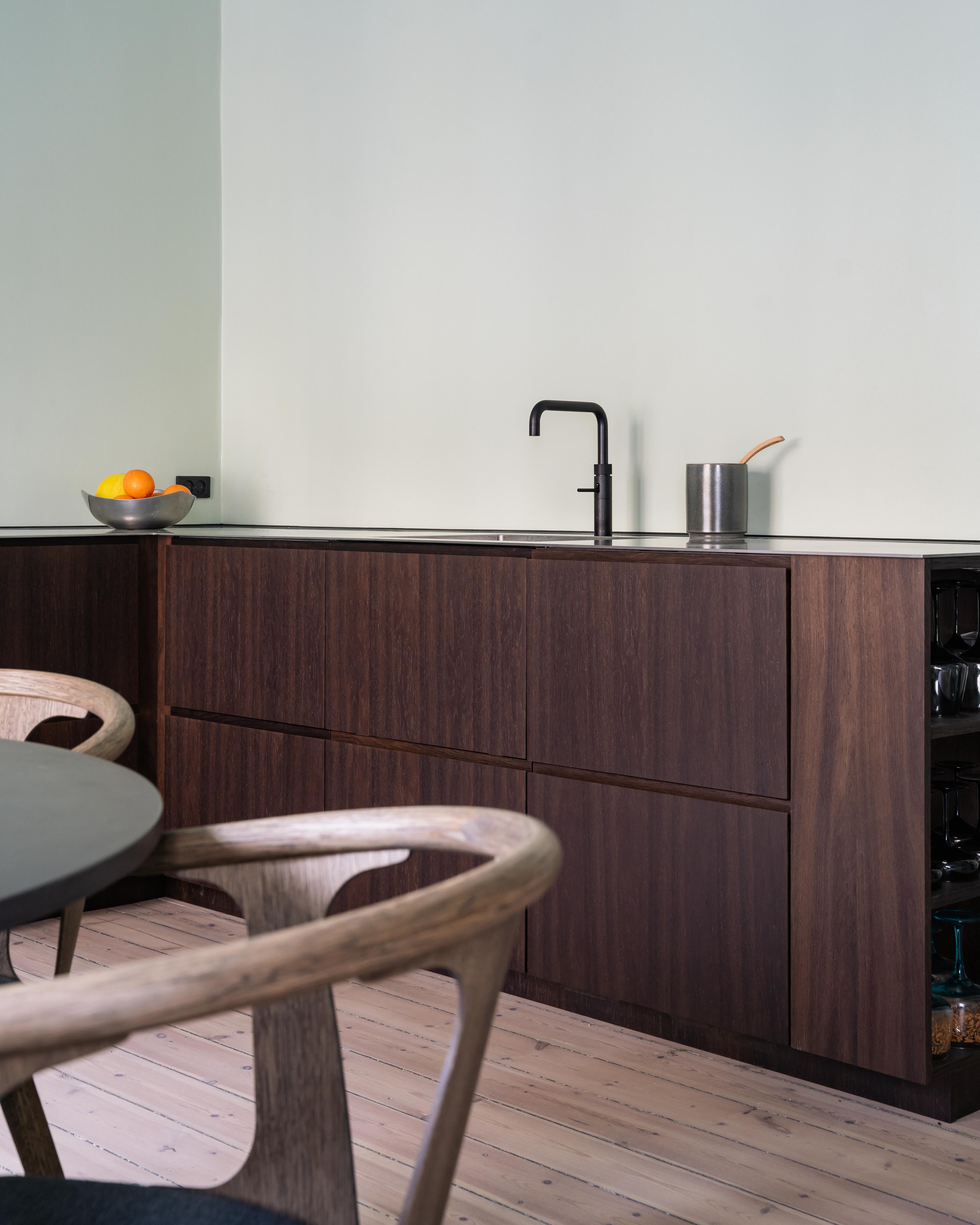 Når snedkerløsninger i røget eg sætter tonen i en stilfuld lejlighed på Frederiksberg.