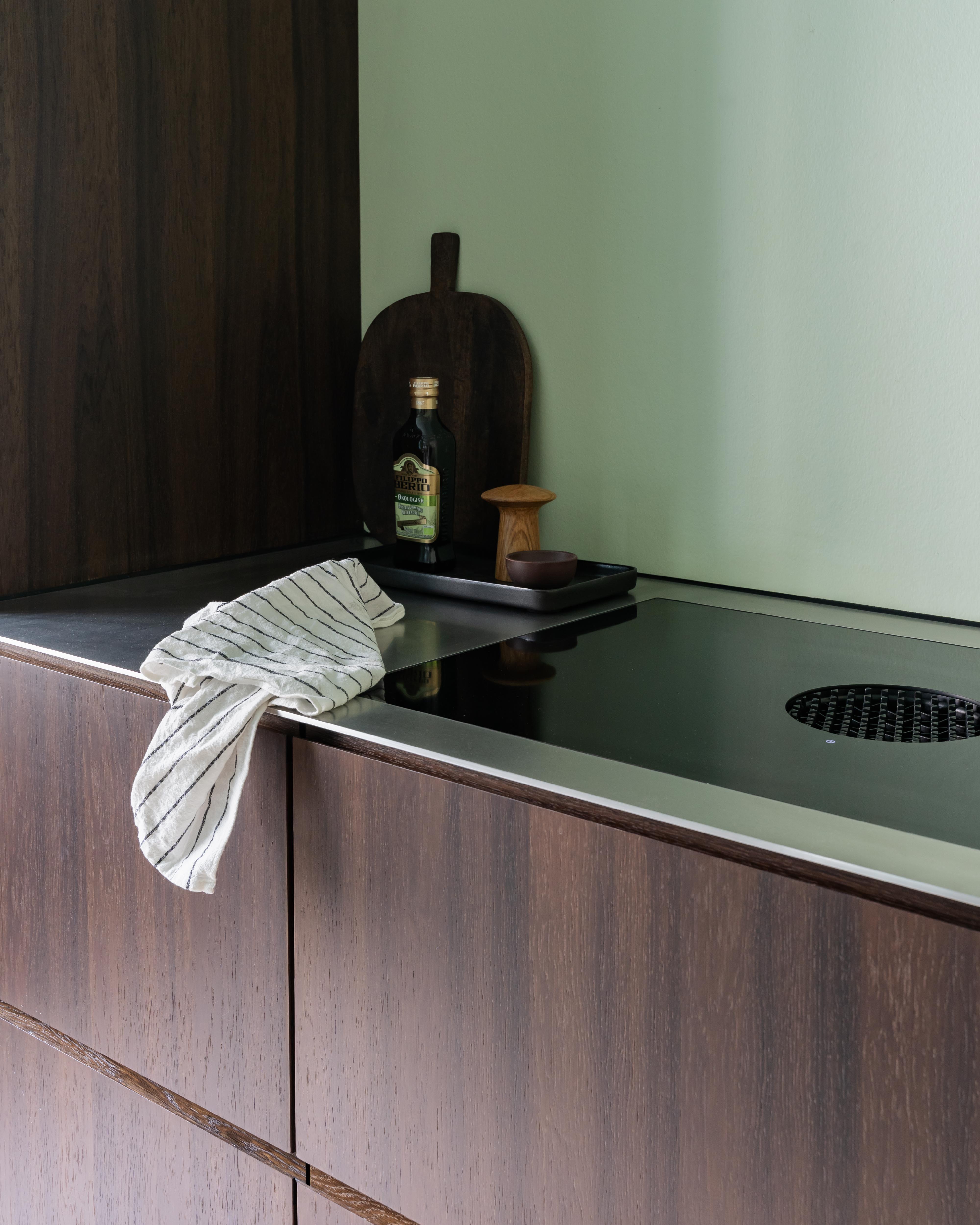 "Mit mål var, at køkkenet skulle fremstå som et minimalistisk, smukt møbel fyldt med funktioner. Det synes jeg er lykkedes, og det er helt, som jeg drømte om," fortæller han.