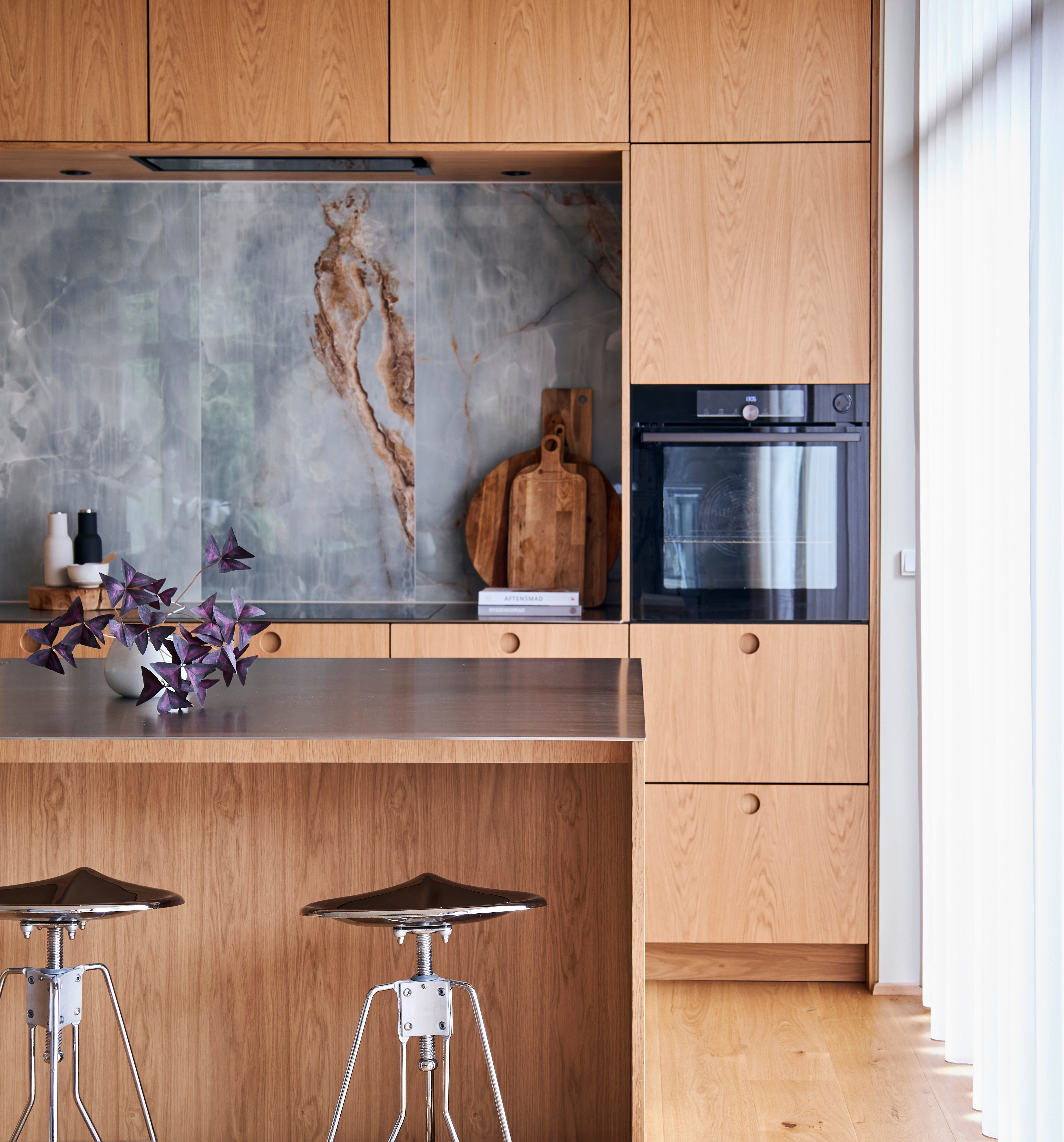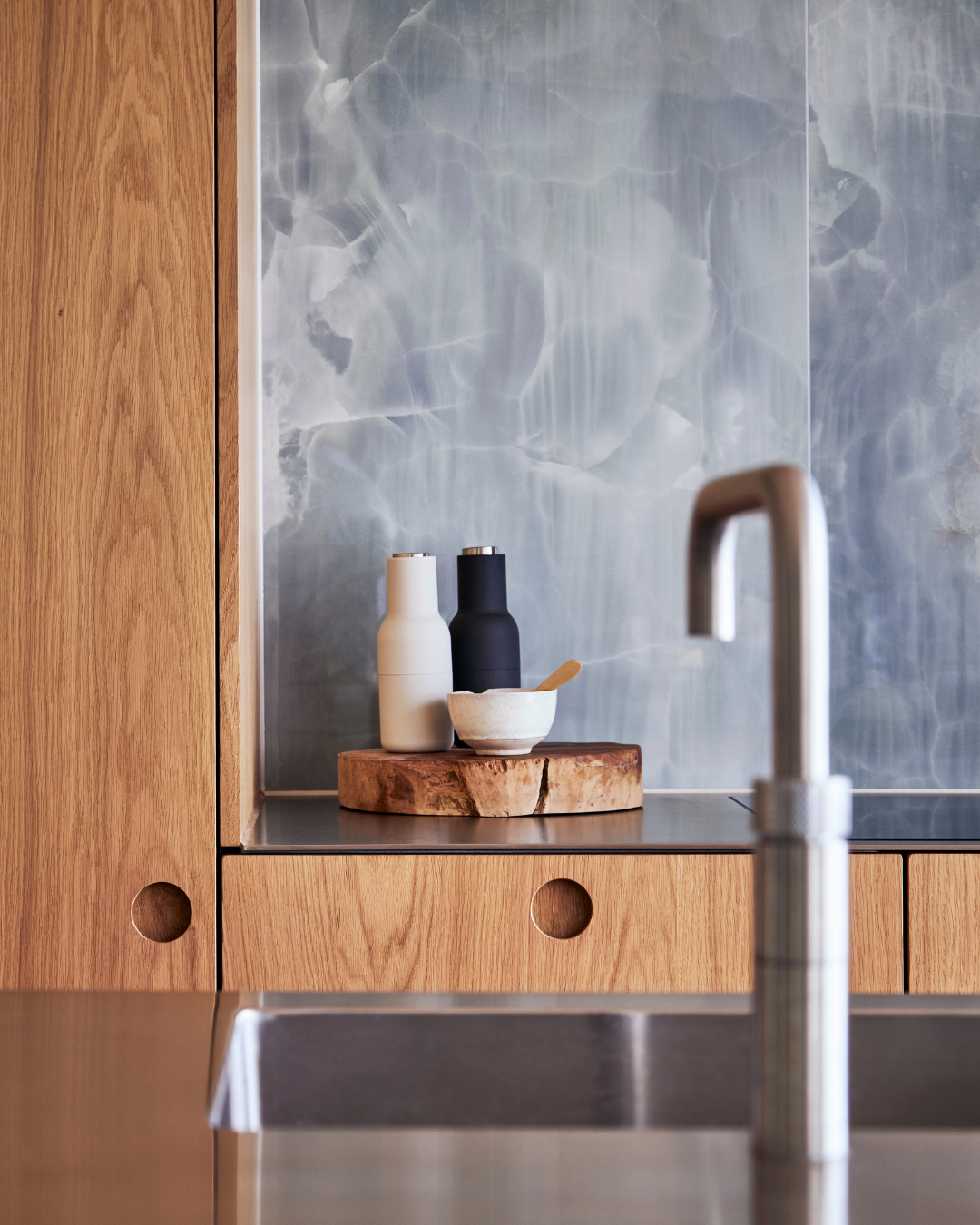 Håndsoteret finér med mulighed for vandret eller lodret åreretning på snedkerfronterne
